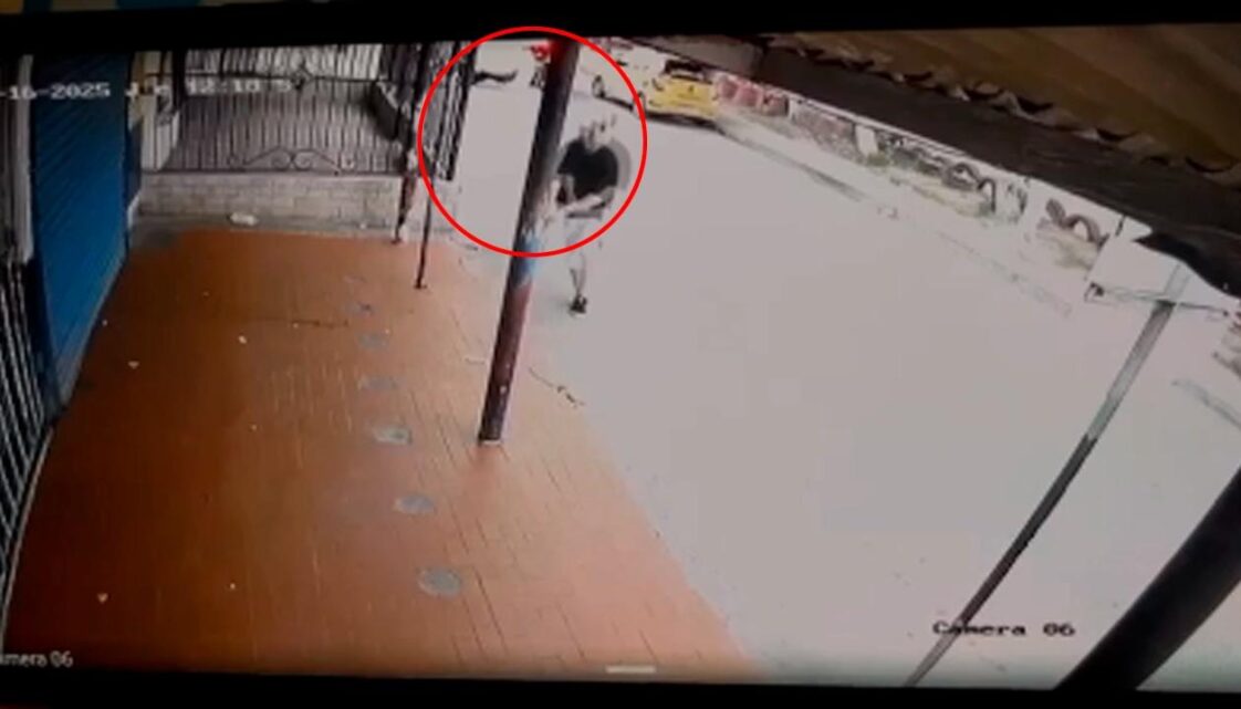 El hecho ocurrió en la carrera 3A Sur con calle 10A y quedó grabado en una cámara de seguridad. En las imágenes se observa el momento en que los uniformados intentan interceptar a un sujeto que permanecía en una esquina; de repente, el hombre saca un arma y dispara, desatando un breve pero intenso cruce de balas.