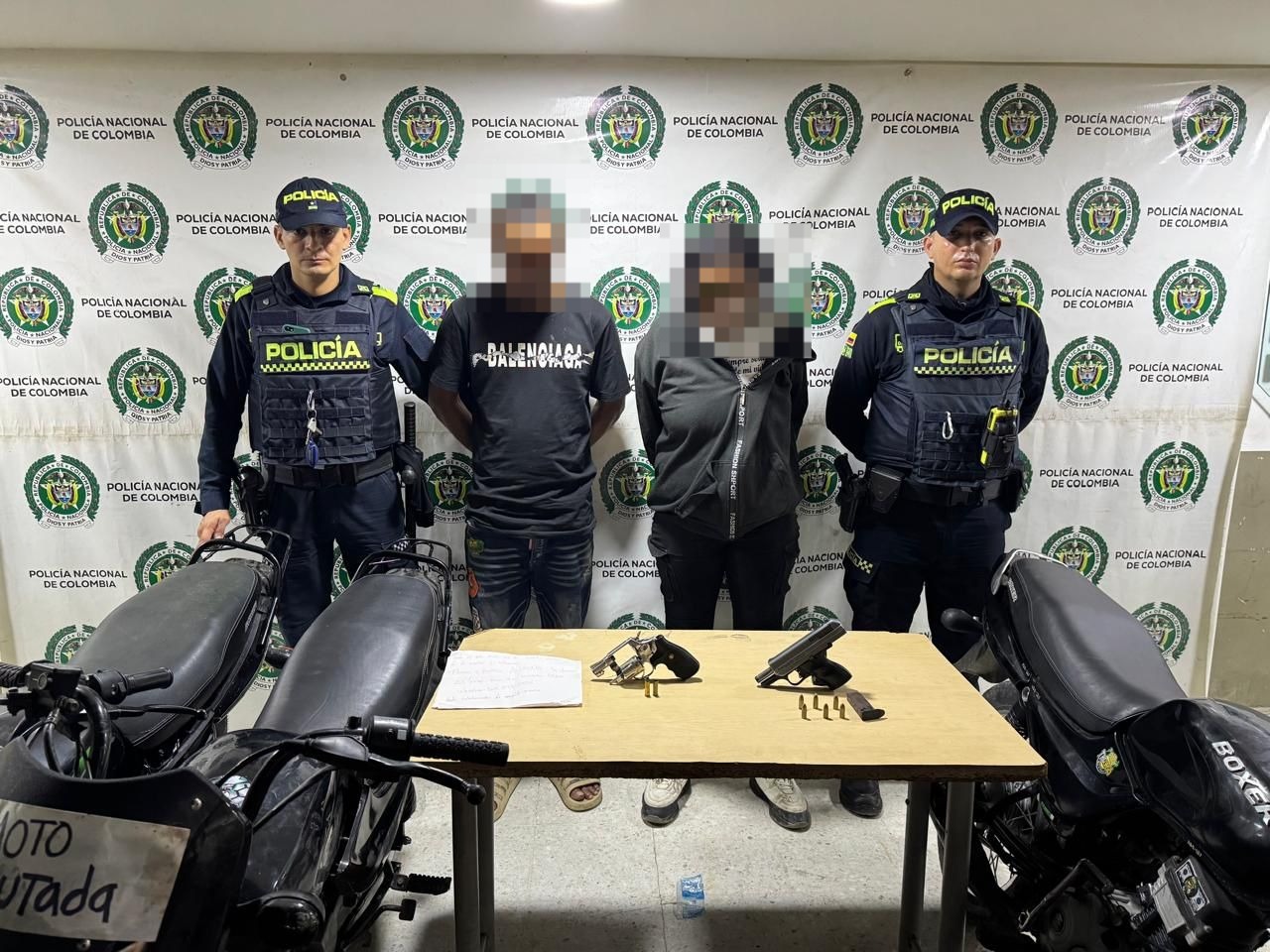 El primer procedimiento se registró tras un llamado oportuno de la ciudadanía, que permitió a uniformados del Modelo del Servicio de Policía Orientado a las Personas y los Territorios capturar a dos individuos por el delito de porte ilegal de armas de fuego y municiones, gracias a la rápida intervención policial.