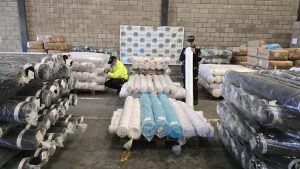 La diligencia de registro y allanamiento fue adelantada en el centro de la ciudad por la División de Control Operativo de la Policía Fiscal y Aduanera (Polfa), donde se incautaron 1.800 confecciones y 492 rollos de textiles, equivalentes a 50.970 metros cuadrados de tela que eran almacenados y comercializados de forma ilegal.