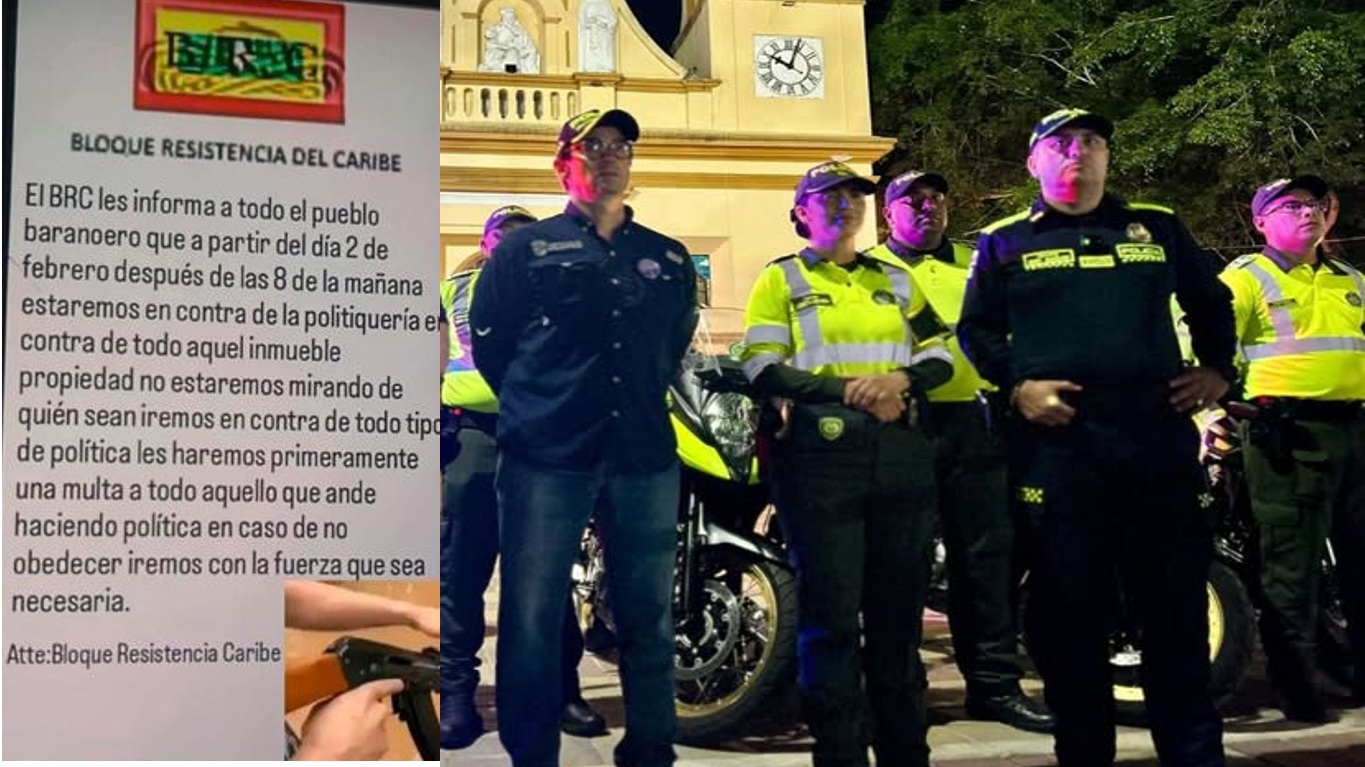 La Policía del Atlántico adelanta investigaciones por la circulación de un panfleto amenazante que advierte contra la realización de actividades políticas en el municipio de Baranoa, y que sería atribuido al denominado Bloque Resistencia Caribe, también conocido como ‘Los Costeños’.