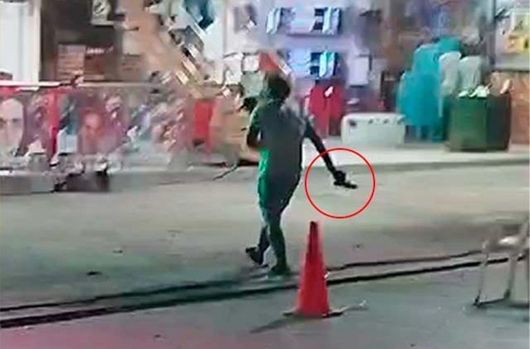 n las imágenes, se observa a personas en el interior del local lanzando objetos, y posteriormente, se escuchan las detonaciones. Tras realizar los disparos, el hombre se aleja corriendo, aparentemente debido a que alguien desde el interior también le disparó, aunque no resultó herido.
