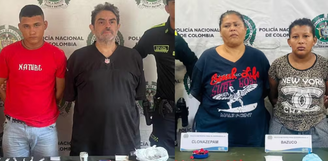 Los capturados fueron identificados con los alias Olga, Alexa, Chencho y Miguelito. Los dos últimos, Chencho y Miguelito, registran antecedentes judiciales por los delitos de amenazas y falsedad en documento público.