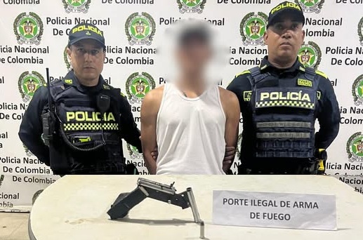 El procedimiento se realizó mientras uniformados patrullaban la Calle 11 con Carrera 1F, donde notaron la actitud sospechosa del ciudadano y procedieron a un registro. Durante la inspección se encontró una pistola de fabricación artesanal con cacha de madera envuelta en cinta negra y un cartucho calibre 38 sin percutir, que el hombre portaba en la pretina del pantalón.