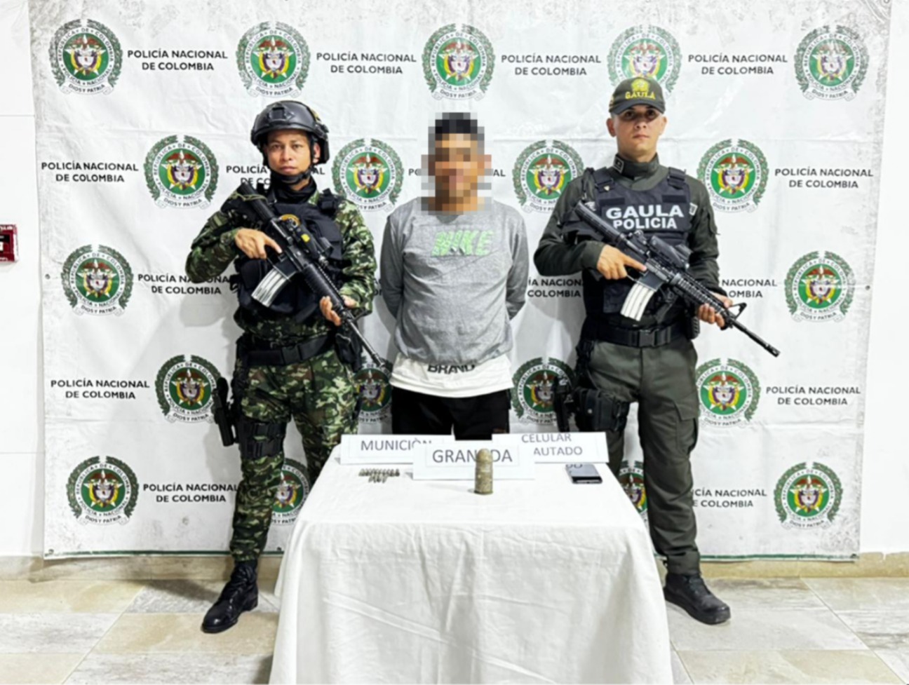 En una operación conjunta el GAULA logró la captura de un hombre, a quien se le incautó una granada y munición, afectando la capacidad armada de una estructura criminal.
