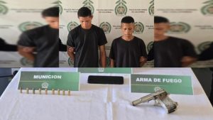 En un operativo realizado por la Policía en el barrio Nuevo Horizonte de Sabanalarga (Atlántico), fueron capturados dos hombres en posesión de un arma de fuego y varios elementos asociados.