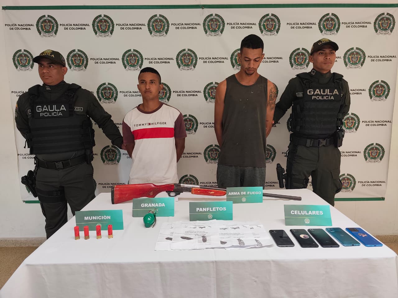 Los detenidos, identificados con los alias de “Sebastián” y “Sebas”, de 23 y 24 años, fueron arrestados durante diligencias de registro y allanamiento en el municipio de Sabanagrande.