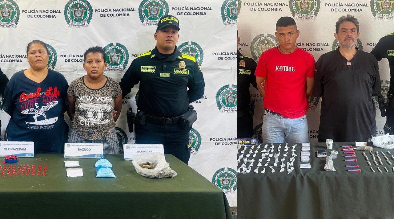 La Policía Nacional reportó la captura en flagrancia de cuatro personas por el delito de tráfico, fabricación o porte de estupefacientes en Barranquilla y Soledad. Las detenciones se produjeron durante cinco diligencias de allanamiento y registro en los barrios Las Américas (sector Las Tablitas) de Barranquilla, y Soledad 2000 y Vista Hermosa en el municipio de Soledad.