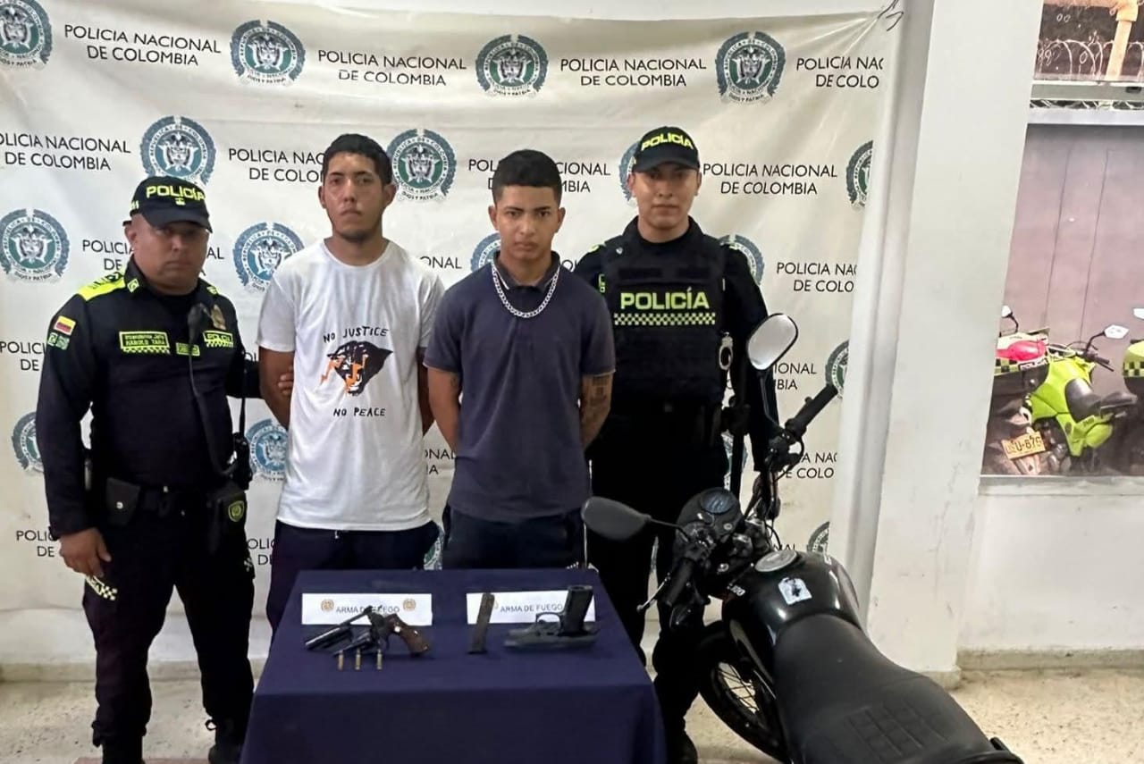 En medio de operativos de registro, control y verificación de antecedentes, la Policía Nacional capturó en flagrancia a dos hombres por el delito de fabricación, tráfico, porte o tenencia de armas de fuego, accesorios, partes o municiones, en el barrio Villa Esperanza de Soledad.
