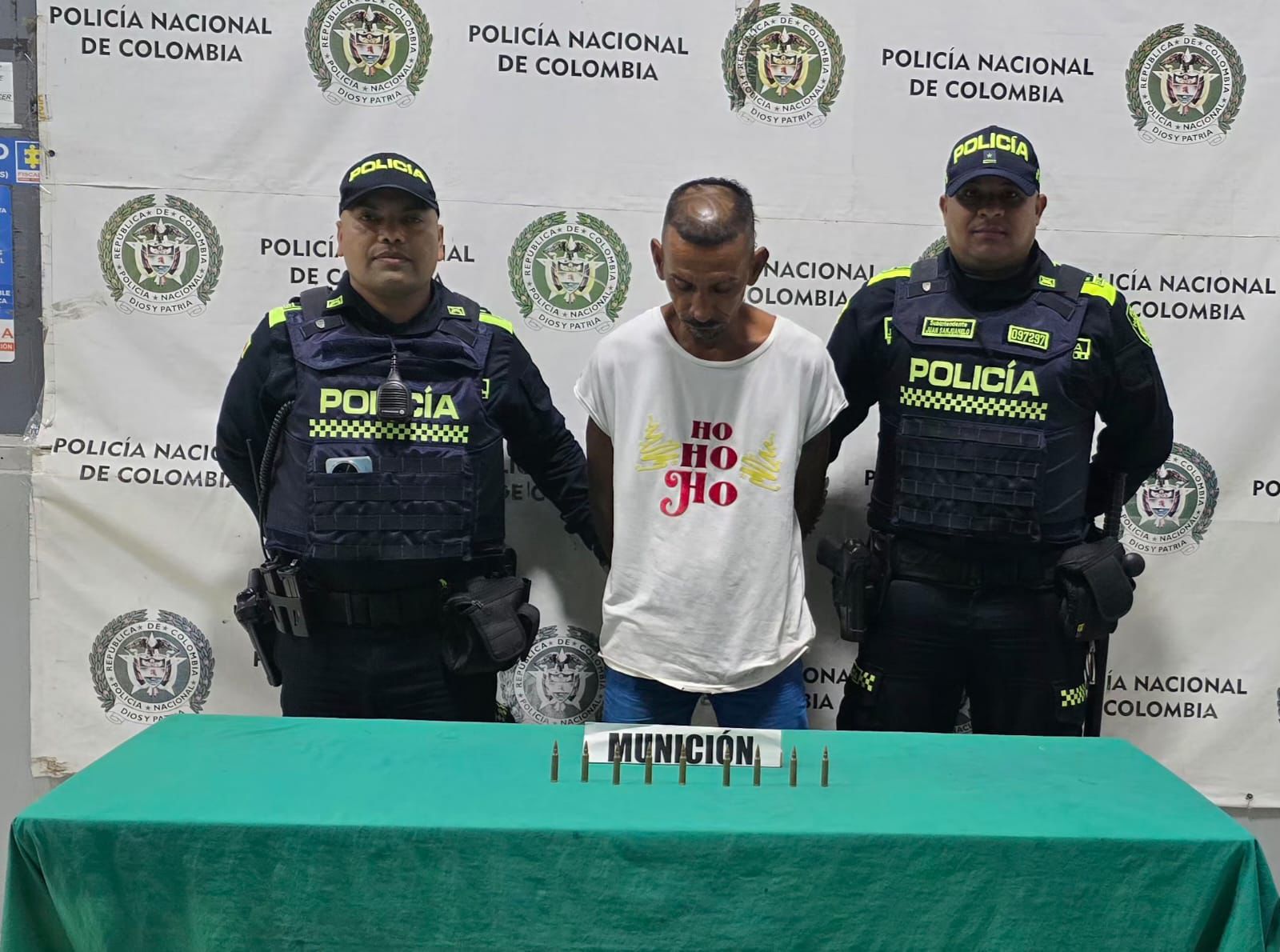 El procedimiento se efectuó en la calle 28 con carrera 36, donde los agentes observaron al individuo con actitud sospechosa y procedieron a realizarle un registro personal. Durante la inspección, se le hallaron nueve cartuchos sin percutir ocultos en el bolsillo derecho de su bermuda.