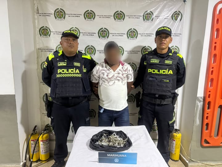 De acuerdo con el reporte oficial, el procedimiento se llevó a cabo cuando los policías realizaban labores preventivas en el sector y observaron a un ciudadano que transitaba a pie por la zona. Al practicarle un registro personal, le hallaron en la pretina de su bermuda una bolsa plástica negra que contenía 60 bolsitas transparentes con una sustancia vegetal que, por sus características, se asemeja a la marihuana.