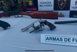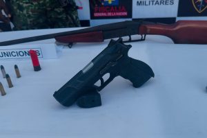 Durante la operación militar, se incautaron cuatro armas cortas, dos escopetas, munición y material de inteligencia militar.