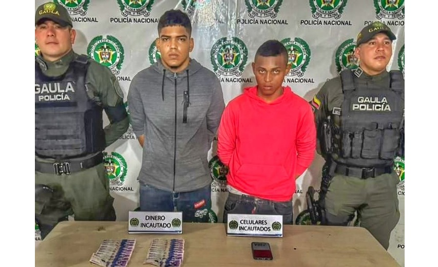 La Policía Nacional, a través del GAULA, capturó en flagrancia a dos sujetos que intimidaban y exigían dinero a una víctima en vía pública del sector de Caribe Verde, en un operativo coordinado con la Fiscalía General de la Nación.   La acción se logró gracias a labores de investigación y seguimiento que permitieron ubicar a los individuos justo en el momento en que materializaban el cobro extorsivo.   Según las autoridades, los capturados se hacían pasar por integrantes del Grupo Delincuencial Organizado “Los Costeños” y venían amenazando a la víctima para exigirle $2 millones, bajo la advertencia de que atentarían contra su vida si no pagaba.   Durante el procedimiento, se estableció que uno de los detenidos tiene antecedentes por daño en bien ajeno y acceso carnal abusivo con menor de 14 años. En el operativo fueron incautados un teléfono celular, una motocicleta y $1 millón, parte del dinero que pretendían cobrar al momento de la captura.   Las autoridades reiteraron el llamado a denunciar este tipo de delitos y recordaron que las extorsiones pueden ser reportadas a la línea 165 del GAULA