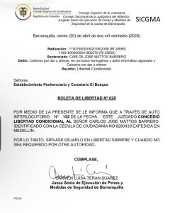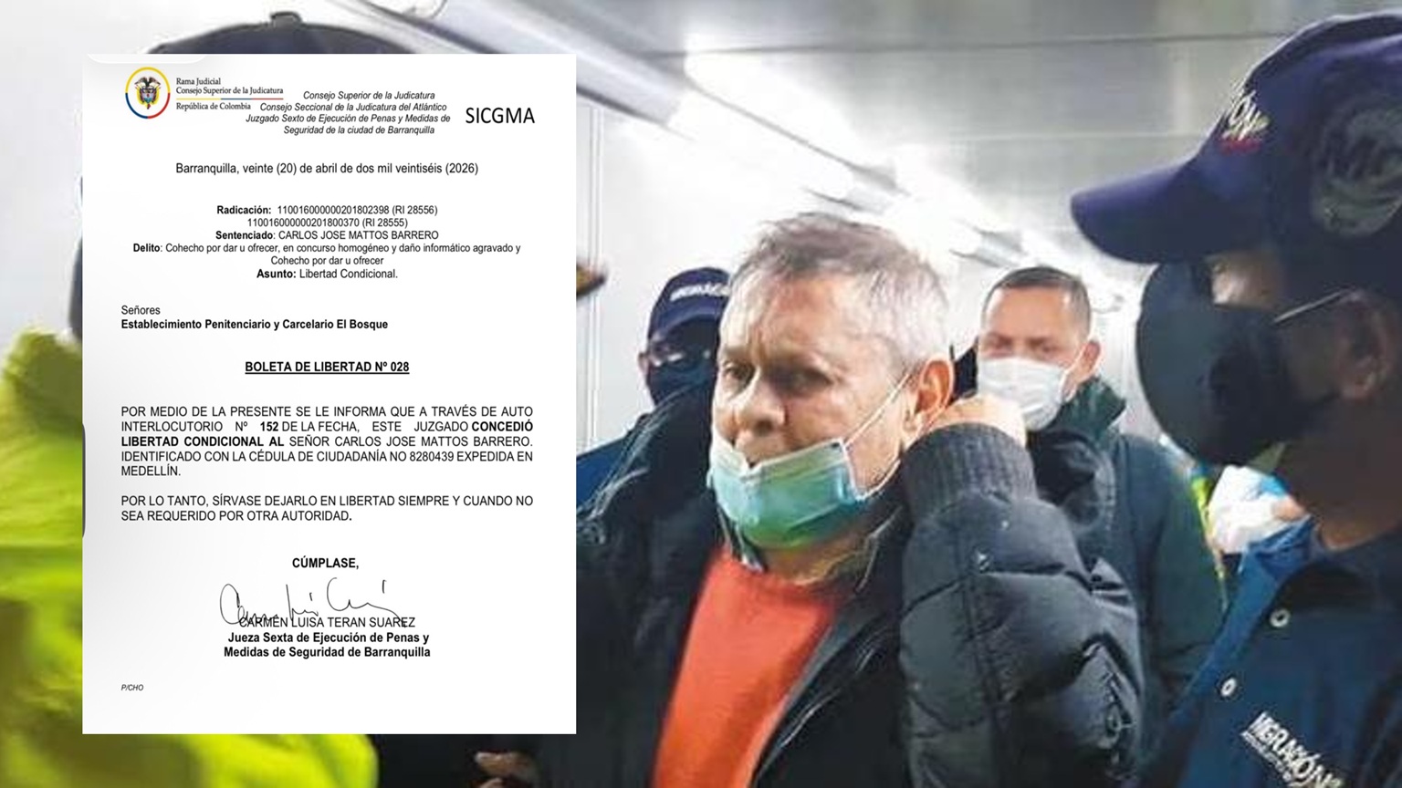 La Jueza Sexta de Ejecución de Penas y Medidas de Seguridad de Barranquilla, Carmen Luisa Terán Suárez, otorgó la libertad condicional al empresario Carlos Mattos, condenado a 9 años de prisión por sobornar a jueces en el denominado ‘caso Hyundai’.