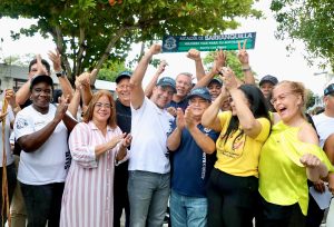 Con calle de honor, baile y música fue recibido el alcalde de Barranquilla, Alejandro Char, en el barrio Los Pinos, donde hizo la entrega de 3 vías que representan 960 metros lineales y mejoran la calidad de vida de sus residentes.