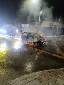 La situación fue controlada por una integrante del Cuerpo de Bomberos; sin embargo, el vehículo quedó en pérdida total.