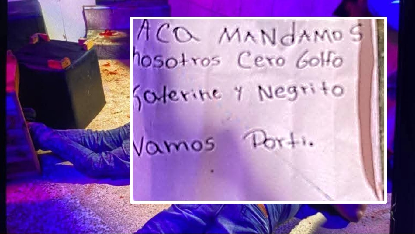 Según versiones preliminares, los sicarios dejaron un letrero junto a los cuerpos, en el que se atribuyen el ataque en nombre de una presunta estructura armada ilegal y advierten que “las muertes continuarán”, aumentando la alarma entre los habitantes.