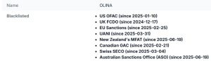 El barco, identificado como Olina, fue interceptado en medio de un dispositivo marítimo enfocado en controlar las exportaciones de crudo venezolano que, según Washington, intentan eludir sanciones internacionales impuestas contra la industria petrolera de Caracas.