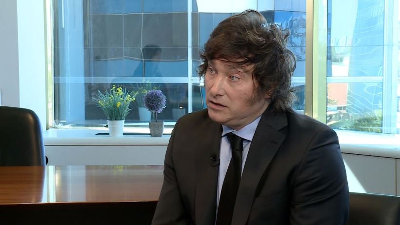 Milei, acompañado por la candidata a vicepresidente, Victoria Villarruel, prometió, en un país acosado por más de una década de inflación que trepó en junio pasado por encima del 115 % anual, no solo dolarizar la economía, para abandonar el devaluado peso argentino, sino también demoler el Banco Central y pasar una “motosierra” por el gasto del Estado.
