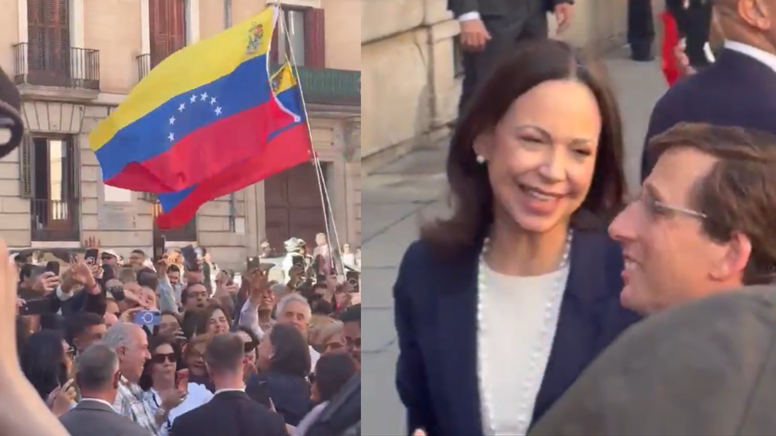 La líder opositora venezolana María Corina Machado llegó a la Casa de la Villa, en Madrid, donde el ayuntamiento de la ciudad le otorgará la Llave de Oro como reconocimiento a su trayectoria política.