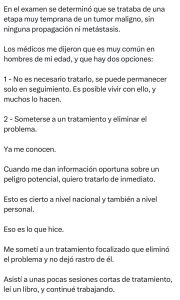 El diagnóstico corresponde a cáncer de próstata, una de las formas más comunes de esta enfermedad en hombres, que en muchos casos puede ser tratada si se detecta a tiempo.