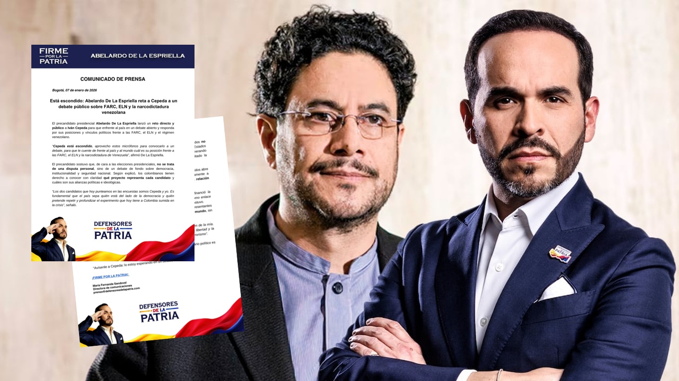 Durante una intervención en medios locales, De la Espriella afirmó: “Cepeda está escondido, aprovecho para convocarlo a un debate, para que le cuente de frente al país y al mundo cuál es su posición frente a las FARC, el ELN y la narcodictadura de Venezuela”.