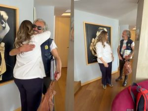 Ante el comentario, Oviedo reacciona con evidente entusiasmo y responde: “¡Qué emoción! Gracias, lo máximo, genial”, mientras ambos se abrazan y chocan las manos de manera efusiva.