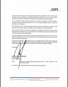 El partido Cambio Radical remitió una carta formal a la mesa directiva del Senado para solicitar que se hagan efectivas las sanciones disciplinarias impuestas por el órgano ético de la colectividad a los senadores Ana María Castañeda y Temístocles Ortega.