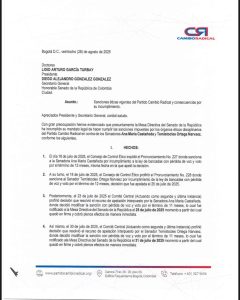 Con esta solicitud, Cambio Radical busca garantizar que las decisiones internas del partido sean respetadas y que los sancionados no participen en procesos decisivos que puedan afectar la imagen y coherencia de la bancada.