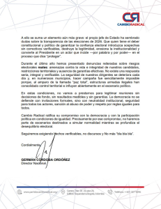 El director del partido Cambio Radical, Germán Córdoba, anunció mediante una carta enviada al ministro del Interior, Armando Benedetti, que la colectividad no participará en la Comisión de Seguimiento Electoral convocada para este miércoles 4 de marzo.
