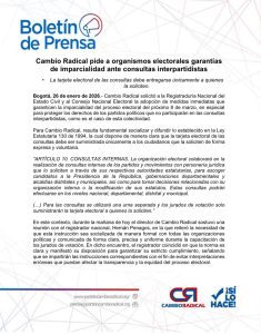 El partido Cambio Radical pidió a la Registraduría Nacional del Estado Civil que el tarjetón de las consultas electorales sea entregado únicamente a los ciudadanos que lo soliciten de manera expresa, en cumplimiento de lo establecido por la ley.