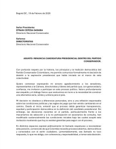 Agregó que “las decisiones recientes en el partido, particularmente frente a los mecanismos de selección y a la no participación en escenarios de consulta, han modificado sustancialmente las condiciones iniciales bajo las cuales acepté esta invitación”.