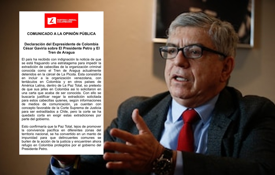El expresidente César Gaviria lanzó fuertes críticas contra el gobierno del presidente Gustavo Petro, tras conocerse versiones sobre eventuales beneficios de no extradición a miembros de la organización criminal Tren de Aragua, bajo el marco de la política de paz total.