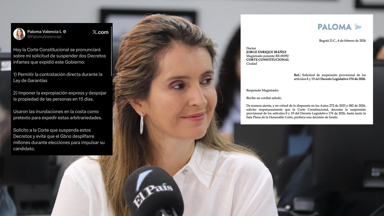 La candidata presidencial Paloma Valencia anunció este lunes que ha elevado una solicitud formal ante la Corte Constitucional para que el alto tribunal revise y suspenda de manera urgente dos decretos que, a su juicio, comprometen la transparencia electoral y el derecho a la propiedad privada en el país.