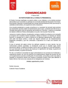 Con esta postura, Comunes se suma a la discusión sobre participación y equidad en los procesos electorales, enfatizando la defensa de las opciones políticas de izquierda dentro del país.