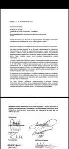 En la misiva, los firmantes destacan la trayectoria pública de Córdoba y señalan que su eventual candidatura representa “una opción sólida y con carácter” dentro del proceso interno que adelanta el conservatismo de cara a las próximas elecciones.