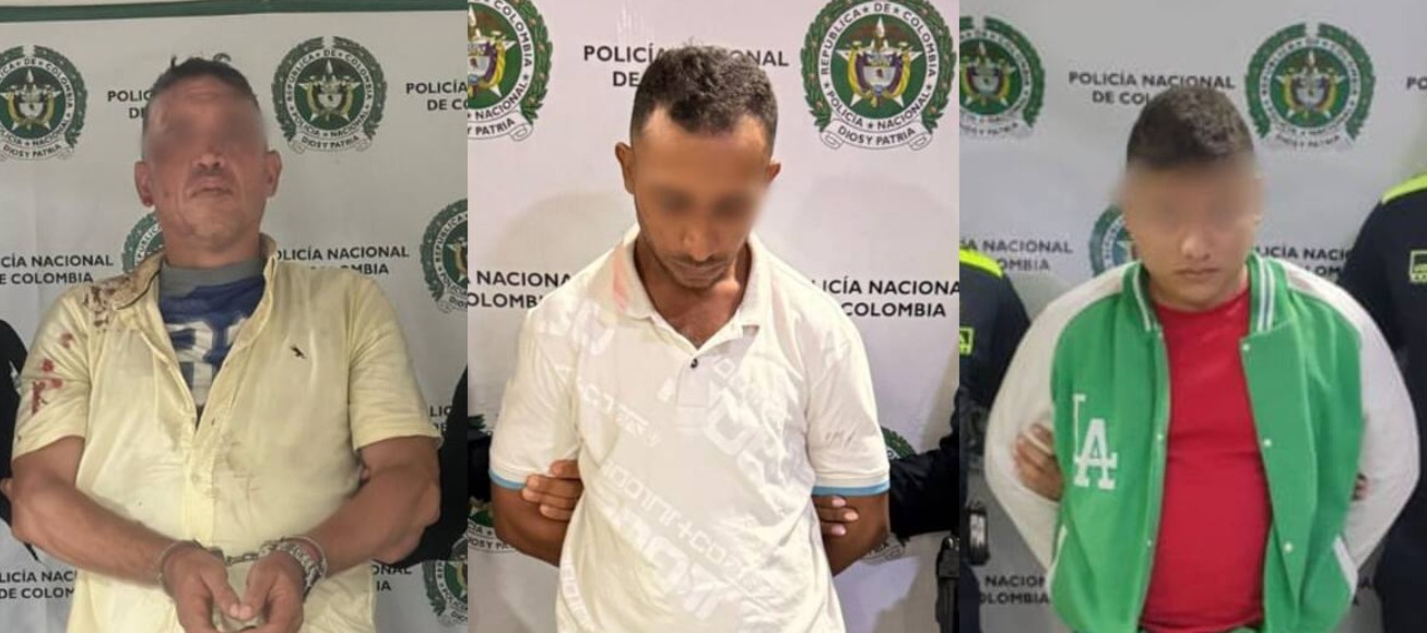 Los detenidos fueron identificados como Luis Fernando Carmona Arrieta, de 46 años; Guillermo José Mercado Julio, de 42; y Brayan José Subiría Anaya, alias Brayan Galindo.