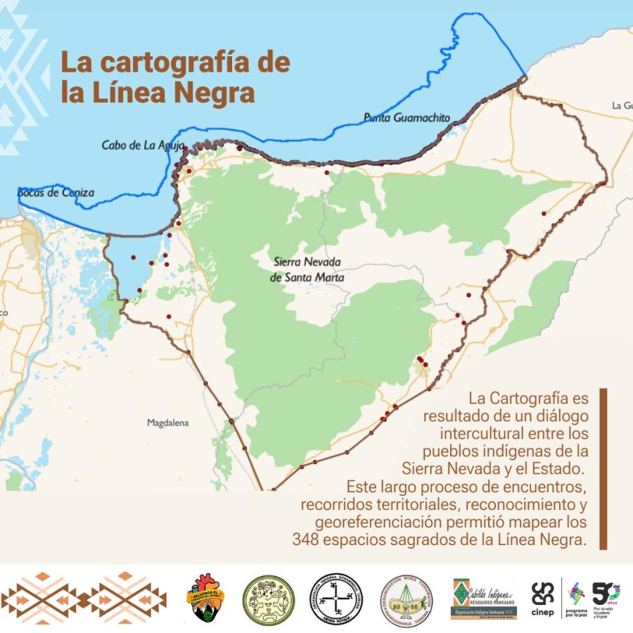 La Línea Negra es un sistema de delimitación espiritual y territorial que conecta sitios sagrados alrededor de la Sierra Nevada de Santa Marta y que constituye un eje central en la cosmovisión de estas comunidades indígenas.