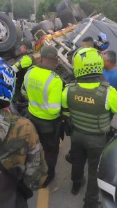 Uniformados de la Seccional de Tránsito y Transporte Bolívar de la Policía Nacional de Colombia, que se encontraban en labores de prevención vial, reaccionaron de inmediato. Los subintendentes Nairo Beltrán Patra, Kewin Carmona Torres y Jaide Castañeda Plazas llegaron al lugar, rescataron al conductor Renel Hernández Puello y le brindaron los primeros auxilios mientras arribaba la ambulancia.