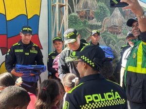 La actividad, liderada por la Policía Comunitaria con el apoyo del Centro Bíblico El Rodadero y la Policía Cívica de Mayores, buscó no solo entregar útiles escolares, sino también fortalecer la confianza entre la comunidad educativa y la institución policial.