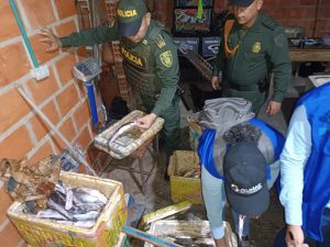 Durante los operativos, los uniformados recorren plazas de mercado y puntos de venta, verificando el estado del pescado, las condiciones de almacenamiento y el cumplimiento de normas sanitarias por parte de los comerciantes.