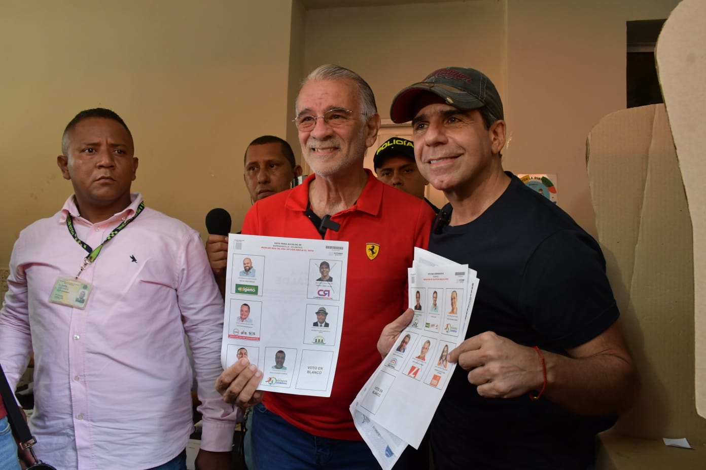 El candidato a la Gobernación del Atlántico, Eduardo Verano De la Rosa, acompañado de su compañero de fórmula, Alex Char, ejemplificó el espíritu democrático y la unidad en la jornada electoral de hoy al votar en la Normal Superior del Distrito de Barranquilla, pasadas las 10:00 de la mañana.