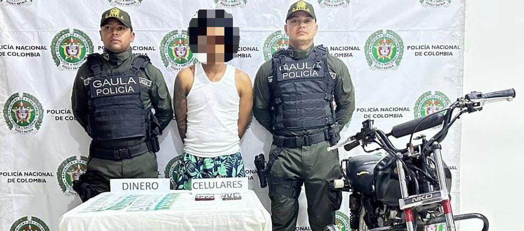 La captura se produjo en el momento en que se materializaba la exigencia económica, lo que permitió a los uniformados actuar en flagrancia. Durante el procedimiento, la Policía incautó dinero en efectivo, dos teléfonos celulares y una motocicleta, elementos que quedaron a disposición de las autoridades judiciales como material probatorio.