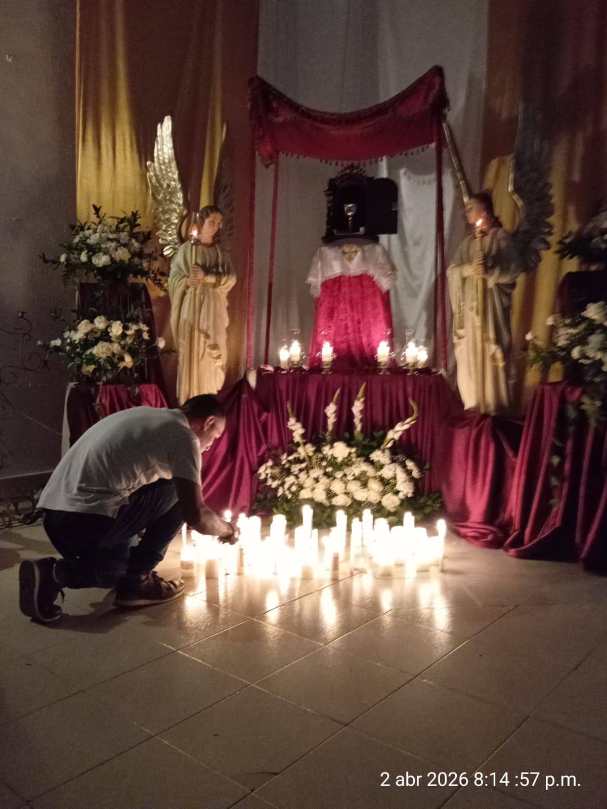 Durante la jornada, las parroquias abrieron sus puertas para recibir a los feligreses, quienes caminaron en silencio, encendieron velas y participaron en momentos de contemplación frente al Santísimo Sacramento.